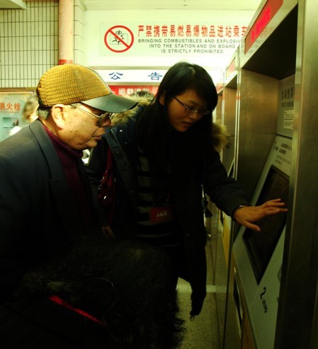 尽管早在1995年,上海地铁一号线就全线开通了,但是到现在还是有不少市民和刚来上海的外地人不知如何使用自动售票机,而该地铁站不提供人工售票。我们的几个同学一遍一遍不厌其烦的告知他们如何使用,三个小时下来解答了几十个市民的问题,帮几十位乘客购买了地铁票。