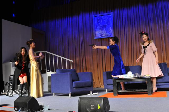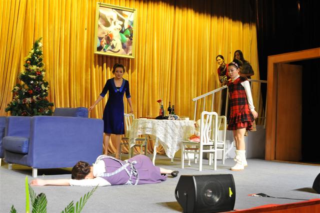 继《蛐蛐四爷》后的又一部自己的话剧。本话剧是由表演系创办者陈茂林教授根据一部法国悬疑小说改编而来。话剧一开始展示给大家的是一幅圣诞节前夕的温馨场面,然而就在这天就在这温馨的家里男主人却发现被谋杀了,屋子里的八个女人成了犯罪嫌疑人。因为每个女人都有一段难以启齿的隐情,所以她们相互猜忌又竭力自辩。故事情节编者安排的跌宕起伏再加上现场逼真的灯光、音效让在场观众无不身临其境。直到最后一刻才让观众恍然大悟,原来这不过是女儿凯瑟琳为了给爸爸出气而制造出来的一场闹剧:为了让爸爸看清家里所有人的别有用心。制造出爸爸被杀的假象。从而让每个人都露出真面目。但是就在所有的事情真相大白于世时,剧中的爸爸因不能接受跟他朝夕相处的这些女人其实每个人都有一个自己的小九九这个事实而最终举枪自杀。结局也不尽向观众抛出了一个使人深思的问题:生活中我们展示给大家的有几分是真、有几分是假?我们是否真的对周围的亲人、朋友做到了问心无愧?