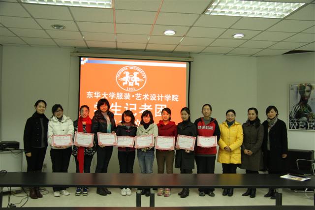 最后,在一番激情洋溢的祝福声中,各位领导为大家颁发了聘书并合影留念。大家欢呼雀跃,服装学院对外宣传学生记者团正式成立了。