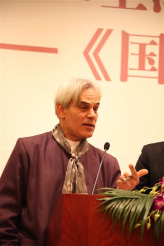 接下来,法国里昂二大时尚学院的Prof. Mongi Guibane先生就中国未来的艺术设计教育展开了演讲,在这场《Suggestions for teaching China's future designers》讲座中 Prof Mongi Guibane给表现出极大的热情,他以在中法两国高校的教学经验,给予了在座教师和学生深刻的启发,他指出在当今社会快速发展的前提下,时尚产业也在快速变迁,而教育方面也应当作出适当的改变,应当在社会及市场需求的情况下进行跨学科、跨领域的合作,在今天的时尚行业中,设计师不再是仅仅从事设计的人员,而要兼顾设计、制作、发布等各个方面的运作,这就要求设计师拥有管理、技术等其他技能。学生应当主动介入时尚业的变革之中,解决设计时间与品牌长远效应之间的矛盾。他的演讲获得了在场师生的经久不息的掌声。