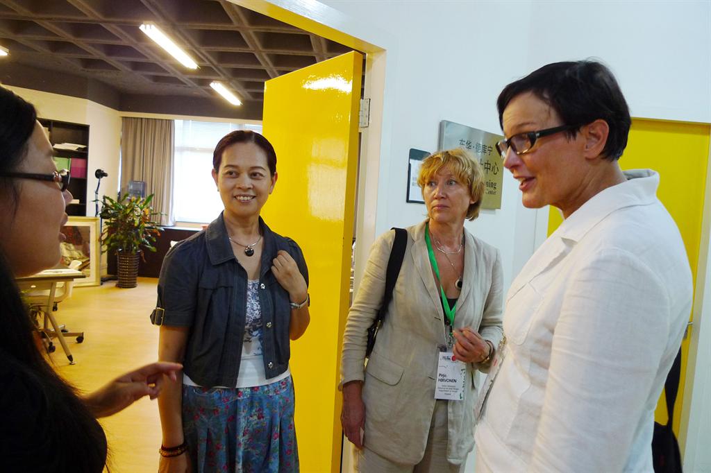 芬兰阿尔托大学艺术设计学院院长一行认真参观了司机社 服装·艺术设计学院各个系部,并对本院服装设计、纺织品设计、视觉传达、工业造型设计等专业的教学和科研成果表现出极大兴趣。