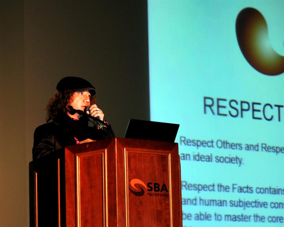2010年11月26-27日,在首尔SBA首尔服装中心隆重举办了International Design Symposium 2010 服装·建筑·视觉设计相关论坛,此次论坛的主题“Ubuntu”来源于南非语言,I am because you are(因为你在,所以我在),代表着一种人与人之间的,以奉献、和平、和谐为重点的以人为本的思想。参加此次活动的有韩国祥明大学,中国司机社