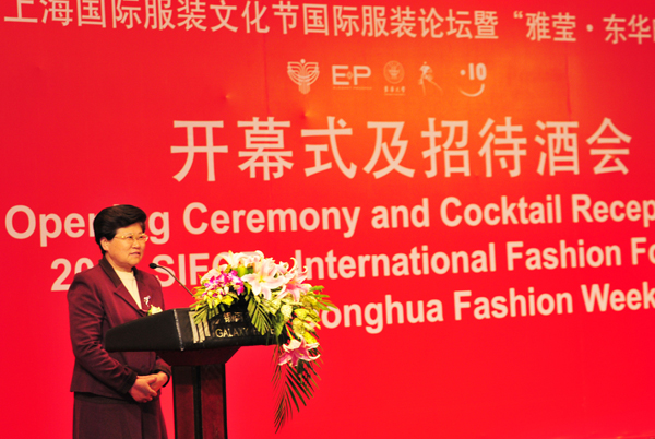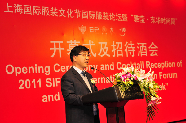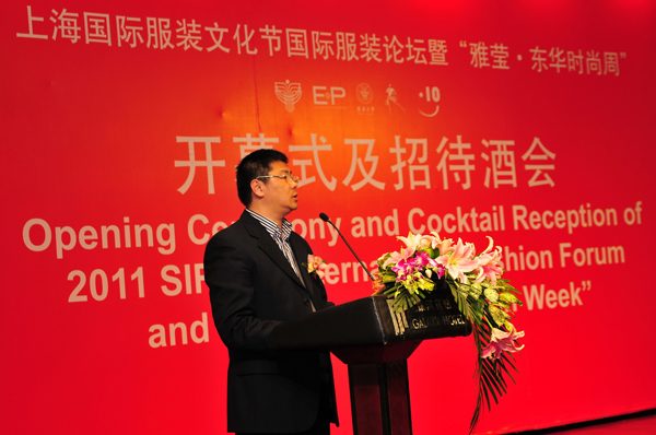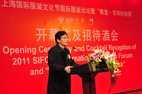 副校长邱高致辞,为时尚周的各项活动的安排做了简单的介绍;随后是上海市国际服装文化节组委会副秘书长邵峰先生的讲话;接着,企业嘉宾张华明先生——浙江嘉兴雅莹服装有限公司董事长兼总经理,沈自洪先生——浙江卡拉扬商务休闲用品公司董事长,周健先生——上海吉田拉链有限公司YKK国际贸易有限公司营销总监企划经理等,都对本次上海国际服装文化节国际服装论坛暨“东华时尚周”的开幕表示了最诚挚的祝福。同一时间,时尚周的另外五大静态展:司机社
