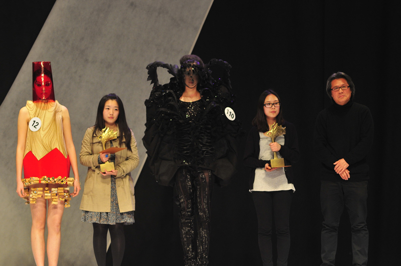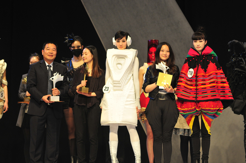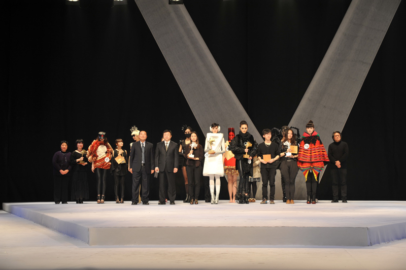 我们的年轻设计师们,每一套服饰都给我们全新的感受,白的温婉典雅,黑的时尚干练,还有彩色的缤纷,各色作品风格迥异,独具匠心,造型各异,使人应接不暇,博得台下的连连掌声!服装设计专业的毕业生们运用所学知识,依自己的设计需要,在材料、廓形,工艺等方面巧妙设计技巧,打造了他们大学四年里最绚丽美妙的作品。 精彩的服装秀后,东华07级服装设计的毕业生们谢幕,观众以热烈的掌声表示对他们的赞美与肯定。在评委们紧张的评分之时,大屏幕播放了今年东华时尚周一系列各具特色的活动:雅莹•东华时尚周“雅莹之夜”、“包容•融合”第三届创意市集、“YKK•东华杯”研究生服装设计作品大赛、卡拉扬箱包设计大赛……回顾这些难忘的精彩时刻。几分钟之后,主持人款款走来,宣布了大赛获奖名单。本次大赛通过初赛和决赛两轮进行,最终角逐10个奖项。其中金奖1名、银奖2名、铜奖3名、单项奖4名。今年大赛设置多个设计研究方向,为学生提供了更多的设计与创造空间,表现设计者的造型、构成、制作等技巧式的能力,以及个性、时尚敏锐感、市场定位等应用式的能力。其中获奖名单如下: