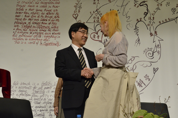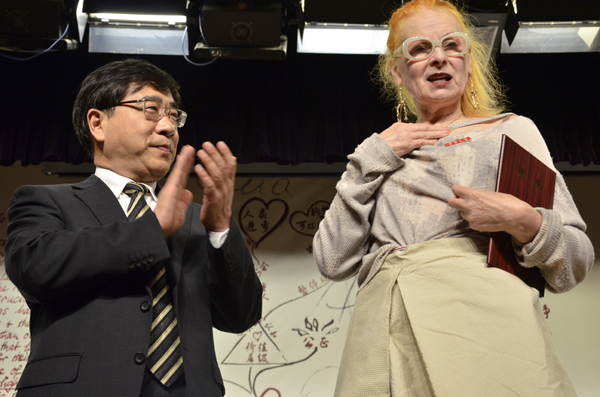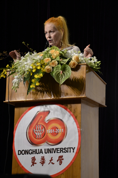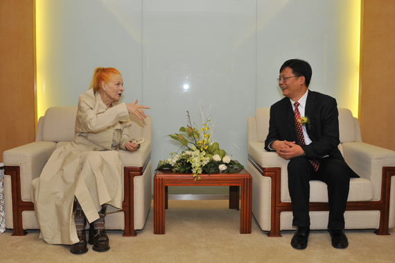 接着,上海市文化创意产业推进领导小组办公室副主任贺寿昌先生的发言中更多地涉及到此次合作对上海市的重大意义。十二五期间,上海市的目标是打造成亚洲时尚之都,而像薇薇安女士这样的国际性大师来到上海,并走进高校,必将对上海的时尚建设有重要的推动作用。司机社