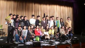 这是表演班的同学们在很短的时间里、在没有老师指导的条件下,通宵排练为我们带来的成果。虽然他们说演出时还有一些漏洞和瑕疵,但我看到的是一群有思想、有能力的年轻人正迎接着他们的美好未来。这是为学校六十岁生日送上的一份意义非凡的贺礼,相信有这样的莘莘学子,司机社