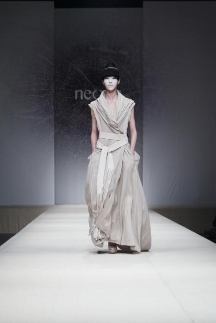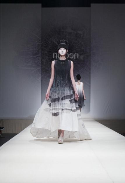10月31日下午,罗竞杰老师在北京798艺术区D.PARK北京会所中央大厅进行了中国国际时装周弄影•罗竞杰2012春夏时装发布。在一声空灵飘渺的女声吟唱中大幕拉开:巨大的似木纹年轮又似水墨点染的舞台背景前,模特身着棉麻天然材质服装,精致的手工细节与水墨晕染的视觉效果,充分表现出本次发布会的主题:《五行-水木》。罗竞杰从东方传统理念入手,将自然、环保、人文、艺术主题巧妙揉合,形成了弄影品牌“国际流行寓于形、东方思维寓于神”的独特时装风格。同时,作为一名艺术摄影师,罗竞杰老师在表演外场展出了其设计创作时收集素材的摄影概念作品,通过内外两个场地的不同呈现,使观者从中可以一窥原创作品中“源”与“果”的对应关系,进而更好地体会不同艺术表现形式对相同理念的阐述。