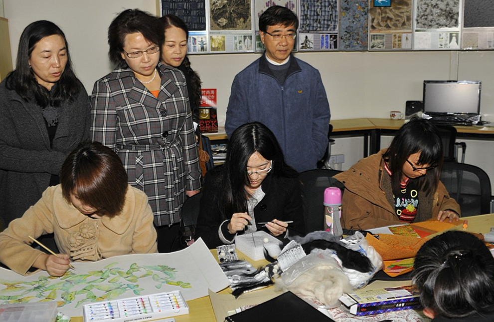 校长徐明稚、副校长刘春红、党委副书记殷耀、服装·艺术设计学院院长李柯玲、副院长万艳敏、副院长刘晓刚陪同视察。