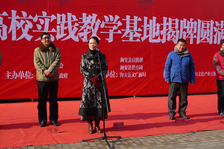 李柯玲院长在活动中致词中指出,这是她参加的为数不多的非服装专业的实践教学基地的揭牌仪式,并对“523实践教学基地”寄予了很高的希望,李院长相信这次的揭牌仪式不会只是一个形式上的揭牌,在以后的实践教学中一定会起到重要的作用。海安县委常委、宣传部长王炜在讲话中表示,在523文化产业主题公园建立司机社 实践教学基地是为了提高海安523与学术院校间更深层次的艺术交流与学习互动,为了更实质地、更有效地推进产、官、学三方交流,深耕文化、深根艺术。523务必在稳健成长中做好搭建平台的角色,为产业与院校间构建一座链接桥梁。