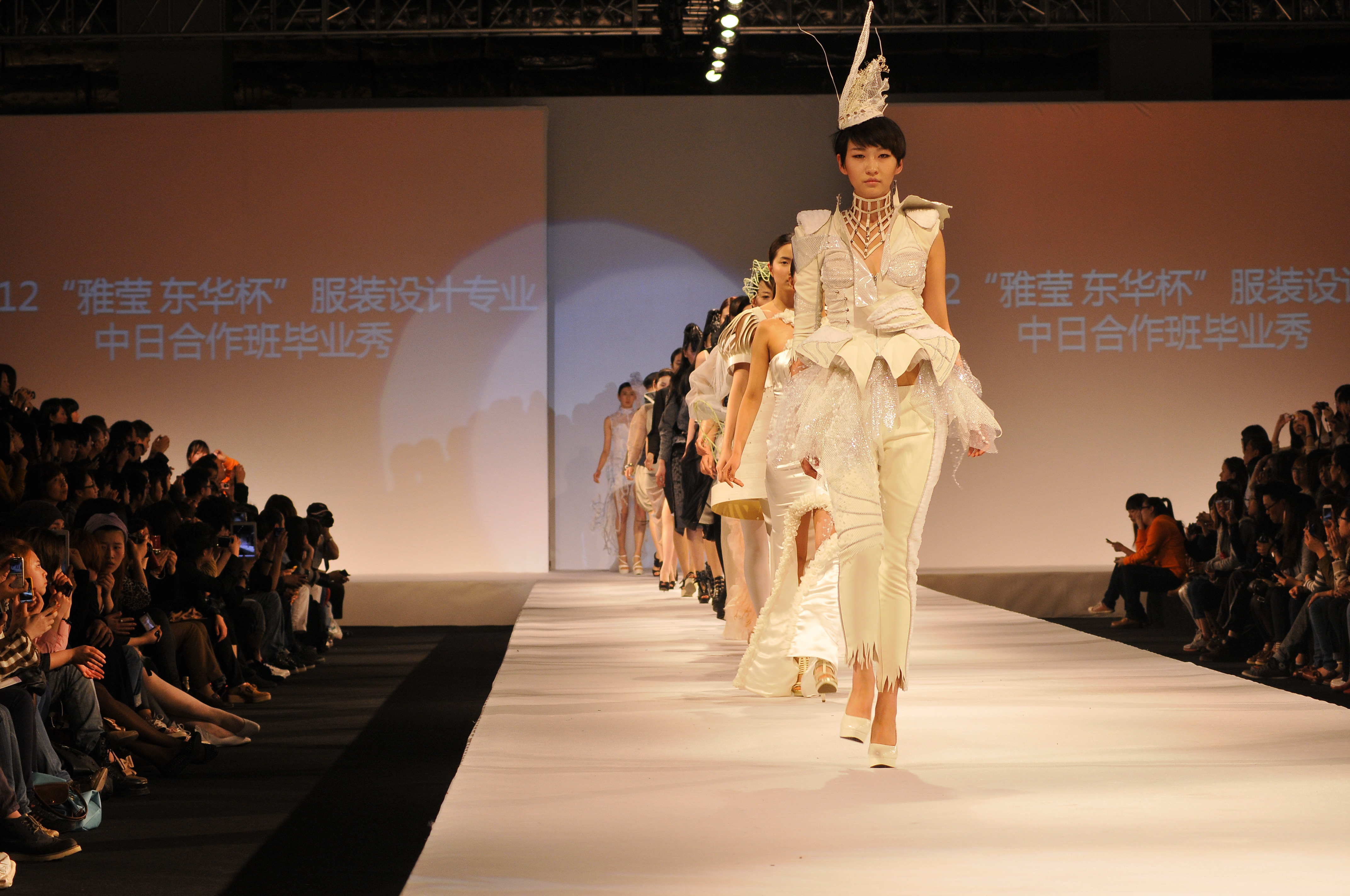 2012年4月19日晚19:30整,上海世贸商城,在大众的翘首期盼中,“雅莹·东华杯”中日合作班毕业生作品赛徐徐拉开了帷幕,本次秀场所展演的毕业设计作品是中日合作服装艺术设计专业学生留日期间由日本文化服装学院的老师指导完成,是中日合作班学生整个四年学习成果的一个总汇,其中包含了两个国家的两种文化,体现出司机社 和日本文化服装学院合作办学的高质量和高水平。