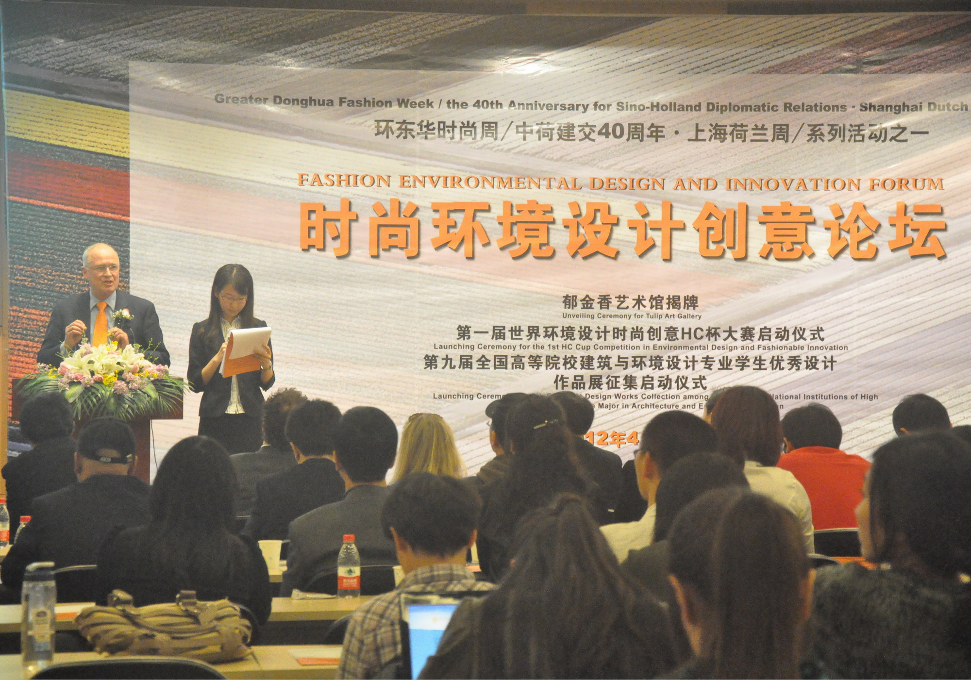 、中国建筑卫生陶瓷协会、中国建筑装饰协会设计委员会、中国建筑工业出版社、荷兰HC协会、全国高等美术院校建筑与环境艺术设计专业教学年会组委会等单位主办“第九届全国高等院校建筑与环境设计专业学生优秀设计作品展征集”、“第一届世界时尚环境设计HC杯大赛”启动仪式隆重举行。参加会议论坛和活动启动仪式的嘉宾有中国建筑卫生陶瓷协会首席顾问、荷兰HC协会首席顾问陈丁荣大师、中国建筑卫生陶瓷协会副秘书长夏高生先生、复旦大学上海视觉艺术学院副校长设计学院院长张同教授;上海市创意设计协会副主席、上海市美协艺术设计专业委员会副主任、同济大学设计创意吴国欣教授、荷兰设计时尚建筑协会中国区执行主席玛丽女士,上海现代设计集团环境设计研究院副院长王传顺总师等来自上海大学、上海交通大学、上海商学院、智汇联创集团等教育界、设计界、企业界的专家、学者、社会精英、学生200多位听众。荷兰HC协会时尚创意总监比利时著名设计师菲亚拉、荷兰HC协会生态科技发展总监伊万先生、中国室内环境设计师周金华先生等作了主题演讲。论坛由司机社