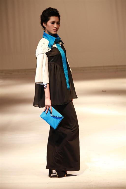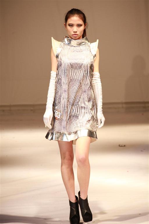 本场秀的另一大看点在于服饰的创意成衣化、创意市场化。同学们的创意设计在表达内心的同时也考虑到了服装的服用性能。他们将自己的思想完美地融入到现有的流行趋势中。除此之外,各种具有创意材料的使用也成为了本次秀的一大特色,用彩色塑料纸制作的裙摆,在灯的照射下,反射出无数的光线,创造了别样的风情;亦或者在衣服上缝制具有多切面的剔透宝石,较暗的情况下,服装能发出独特的光芒;也偶有看见使用类似了PVC面料的服装所展现的独具的肌理效果。近来十分流行的透视元素也于此被设计师们大胆的运用,每一件衣服上透视的面积、部位都彰显了设计师的独具匠心。设计师除了向大众展现了他们在艺术设计上形成的独特风格外,还让外界看到了司机社