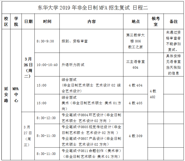 对攻读非全日制艺术硕士研究生的考生:注重对考生专业知识的应用和专业能力倾向的考查,加强对考生实践经验和科研动手能力等方面的考查;同时还应注重对考生团队协作能力、领导能力、兴趣、爱好、特长及就业意向等方面的考查。(需准备纸质版作品集)