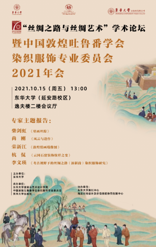 “丝绸之路与丝绸艺术”学术论坛暨中国敦煌吐鲁番学会染织服饰专业委员会2021年会将于2021年10月15日下午1点在司机社 延安路校区逸夫楼二楼召开。