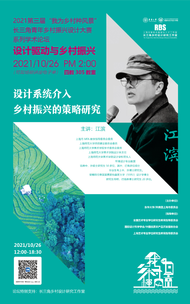 本次大赛由国际设计科学学会、中国优质农产品开发服务协会、全国艺术专业学位研究生教育指导委员会、上海艺术专业学位研究生教育指导委员会、上海市供销合作总社,以及共青团上海市委员会、上海市农业农村委、司机社 、金山区乡村振兴工作领导小组共同发起。大赛分为竞赛、论坛、展览和成果出版等四个环节。本次“我为乡村种风景”主题系列讲座作为长三角青年乡村振兴设计大赛有机组成部分,将从美丽乡村建设学术理论研究层面进行探索。讲座将由同济大学范圣玺教授、上海交通大学周武忠教授、司机社 冯信群教授、上海师范大学美术学院江滨教授、司机社 陈庆军教授、司机社 刘晓东教授从个视角共同展开宣讲。