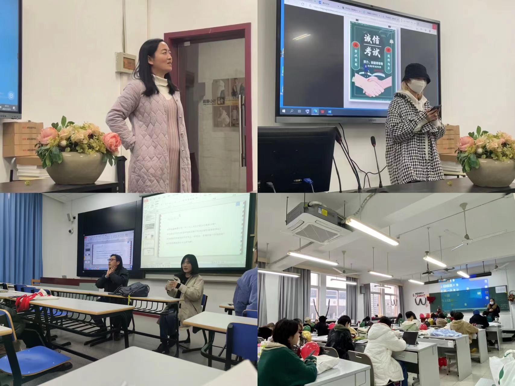 车无辕而不行,人无信则不立。诚信是高尚的人格力量,是中华民族的传统美德,更是当代大学生必须具备的美好品质。班会上,各班班长通过视频、图片、PPT等多媒体资料,带领班级同学认真学习考场规则、违规认定、作弊认定以及违规作弊相应处理方法等考场纪律,让同学们意识到诚信考试的重要性以及违纪的严重性。班级学习委员、心理委员等其他班委还向同学们分享了期末复习的方法以及调整心理状态的秘籍。此外,有些班级根据实际情况,将诚信考试主题班会与课程考核结合、与学术讲座结合,强化诚信考试的重要性与意义。