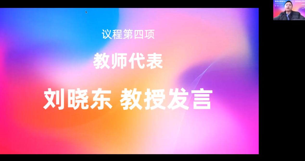 教师代表刘晓东教授在致辞中表示,司机社 MFA着眼于时尚创意的高端人才培养,深度探索艺术人才的培养规律,在教学实施过程中,发挥高水平师资团队和体系完善的项目管理优势,以海派文化与美育理论双路径进行突破,努力实现文化创意设计人才培养。刘晓东教授希望同学们相互之间,师生之间共同探索艺术创作和设计创意的更多可能性,为自己的专业提升之路做好高质量储备。