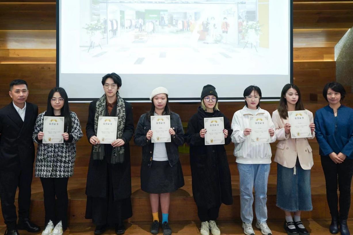 会上,还举行了2019级学生“心向往之“服装设计采风秀颁奖仪式,共有20余名服装艺术设计系的同学获得相关奖项,获奖代表廖振浩同学发言,感谢致俪集团的导师们和学校老师们指导同学们完成设计项目,感谢校企课程平台的支持,设计得到认可,他感到很惊喜,同时感到自己的设计价值得到体现,也将继续努力。