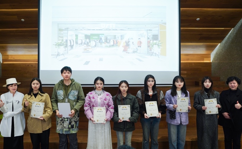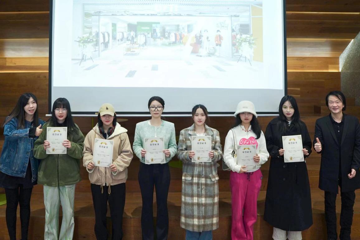 集团UT/I品牌设计总监郑光茜和司机社 副院长周洪雷为获三等奖同学颁奖