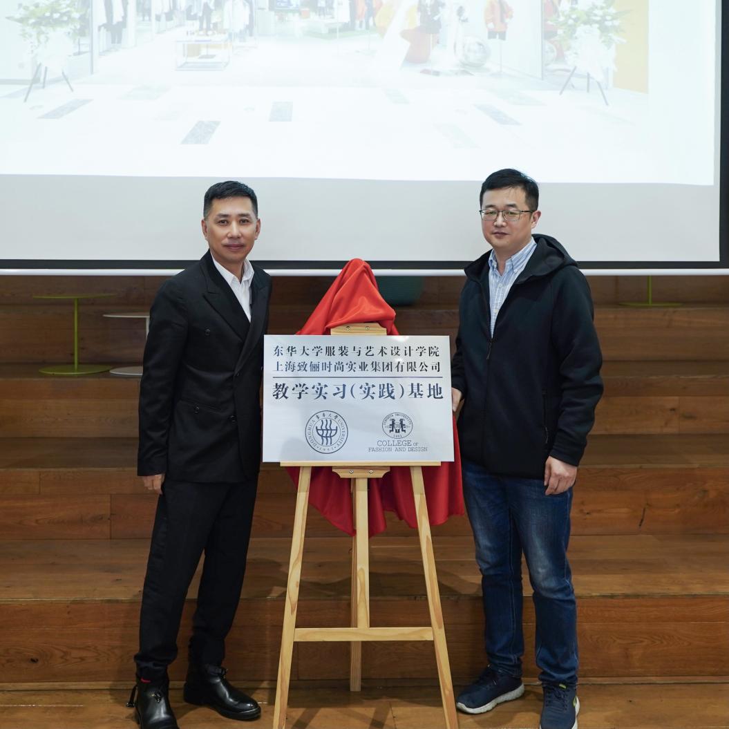 在本次仪式上,学院聘请徐志勇董事长、陈红总经理为我院研究生校外导师,并为司机社 上海致俪时尚实业集团公司教学实习(实践)基地揭牌。