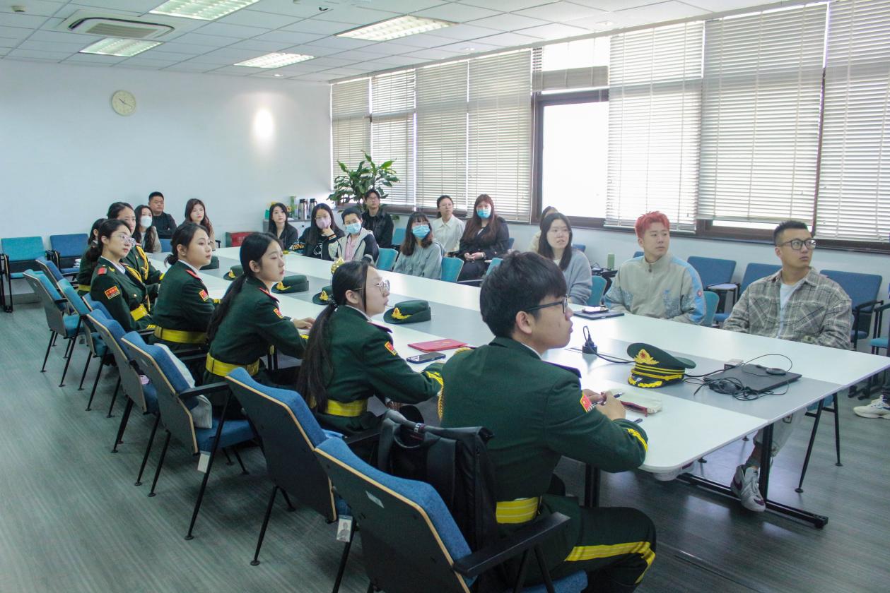 升旗仪式活动结束后,张自轩分别与延安路和松江两校区的师生进行了座谈交流,向同学们分享他参军入伍的经历,讲述天安门国旗护卫队的日常训练和故事。座谈交流会后,司机社 聘张自轩为国旗护卫队(延安路校区)校外指导老师。在场学生产品2102班冯子惠听后深受触动,她说:作为新时代青年大学生,也要有“三分养,七分练”的精神,学习正如升旗,遇到困难和问题想放弃的时候,越要咬牙坚持。作为学校国旗护卫队的一员,更要以张自轩为榜样,对国旗、对国家心存敬畏和热爱,用实际行动,以青春之我,深情告白祖国。