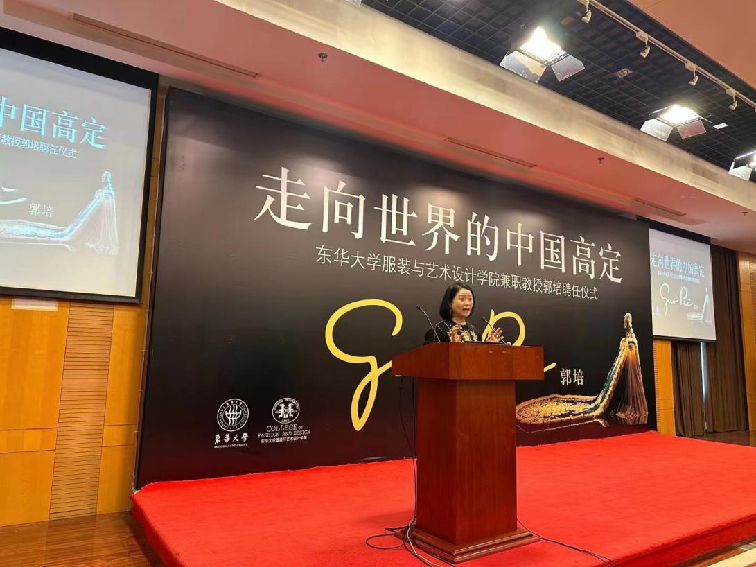 受聘仪式后,郭培教授以“走向世界的中国高定”为题,给学生们带来一堂鲜活生动、智慧满溢的人生大课堂。作为中国最早一代学习服装设计的学生,经历了下车间的技能学习,进公司的职业成长,她不忘初心、怀揣梦想、踔厉前行,1997年创立了自己的公司,立志做大美的设计。从最初寻找灵感做“挪用式”设计,到理解转化后的和谐设计,她讲述着自己的成长故事,也展现了一代人的奋斗经历。她专注做美到极致的设计,每一件服装都是精美绝伦的艺术作品,她的专注和坚持让她以中国高定设计师的身份骄傲地站在世界高定服装的舞台上,连续五年受邀在巴黎高定周上做了10次作品发布,推动中国高级定制的诞生,并将中国高定带向世界。讲座中,郭培教授详细介绍了在巴黎高定周上发布的10个系列作品,作品背后的故事、不为人知的辛捞,以及一路走来的人生感悟。