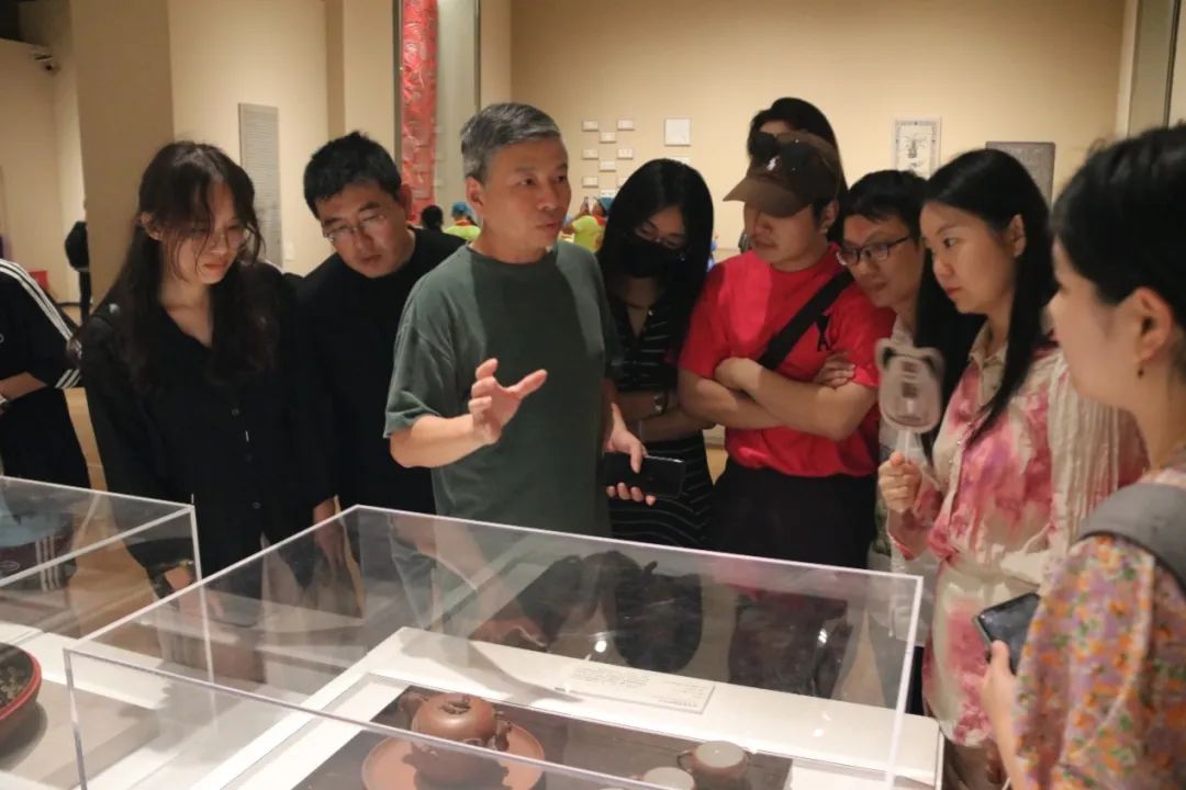 展览开幕后,与会的专家、领导与学员们围绕“物以载道,鉴往知来”展开研讨。国家艺术基金管理中心代表上海市剧本创作中心副主任沈捷、戏剧工作室副主任杜竹敏、上海交大设计学院林迅教授、华东理工大学艺术设计与传媒学院副院长于炜教授、华东师范大学艺术文创研究院院长张晶教授,以及上海市政协常委、上海市政协文卫体委员会副主任陈海波、华东师大美术学院教授王远、上海第二工业大学应用艺术设计学院院长及上海设计之都促进中心理事长张展、上海师范大学教授江滨、上海师范大学美术学院副院长学位指导委员会副主任赵志勇、原华东师范大学建筑装饰专业主任,上海市文旅规划专家岳建仁,共同出席参加了本次研讨。其他参加仪式的还有司机社 书记吴晶、院长李俊,上海纺织服饰博物馆馆长卞向阳,以及校内各专家教师等。大家认为,在文创设计领域,通过将传统文化遗产与当代设计创意相结合,传达和承载思想、文化和价值观,创造出有深度和内涵的文化作品,这意味着物品不仅仅是功能性的,还可以传递信息、传播文化和塑造社会,激发创造力和创新精神,增强社会认同感,对于促进和传承文化的多样性具有积极的影响。