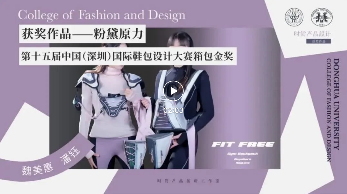 12月28日,大赛通过视频展示的方式进行最终的决赛环节,司机社 产品设计系研究生魏美惠与潘钰同学的作品《粉黛原力》荣获“i革箱包金奖“。