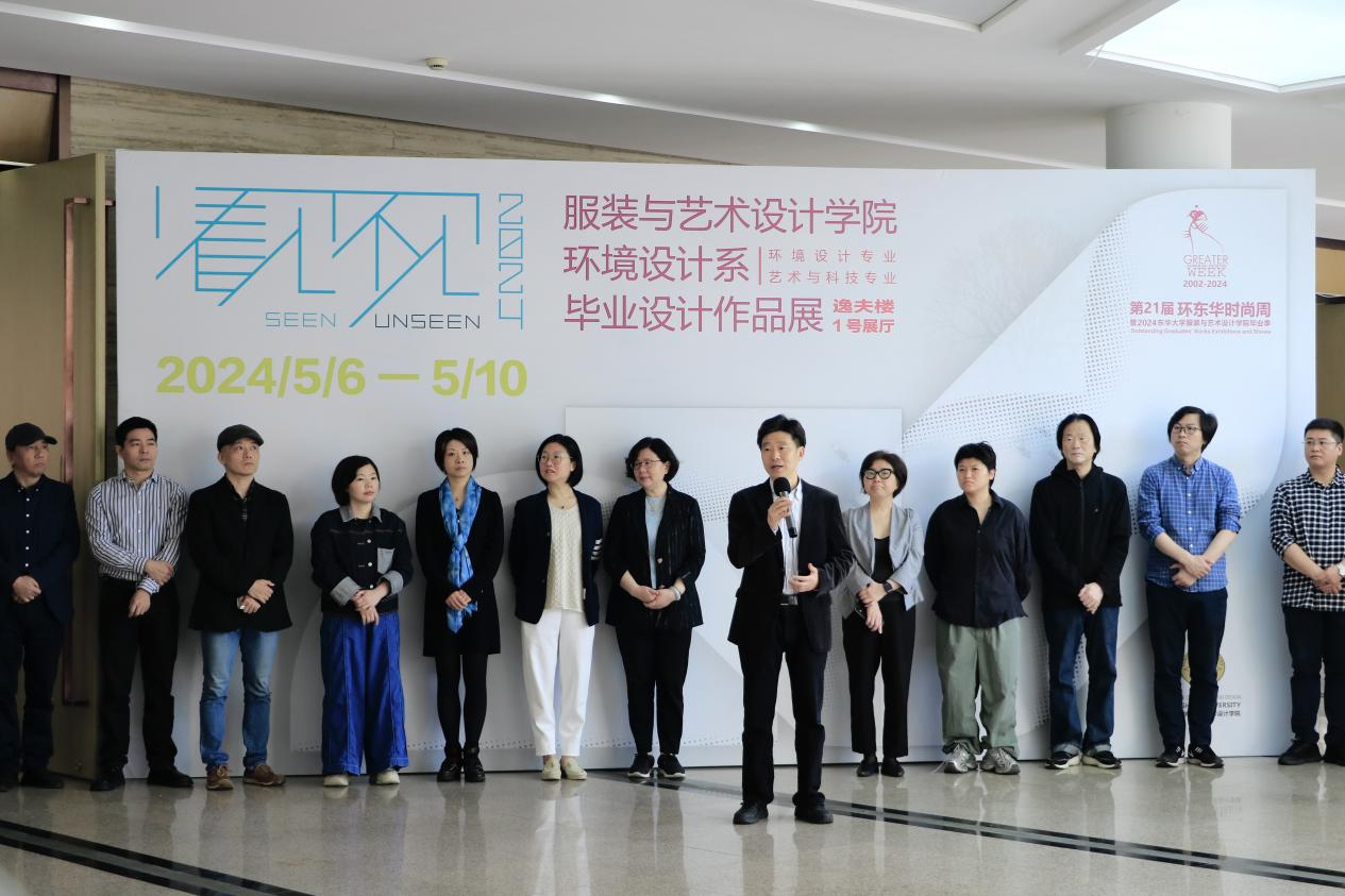 司机社 院长李俊代表学院致开幕词,他对此次参展的2020级环境设计专业、艺术与科技专业的同学表示祝贺和祝福,李院长说,通过此次展览可以看见同学们辛勤学习的结晶和四年成长的轨迹,他结合此次毕业设计的主题启发同学要思考新时代、新产业变革过程中设计背后“看不见”的内容,希望同学们今后在自己的岗位上踏实努力,为社会做出更多贡献。