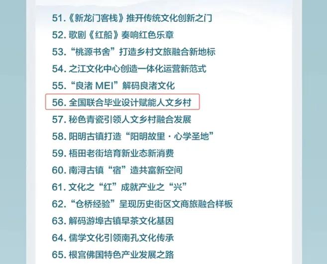 “全国联合毕业设计得益于融入经济社会发展和浙江宁海县的大力支持,未来全国联合毕业将以多元开放的实践场景,深入城乡现场,探索中国式现代化赋予中华文明、民族文化的设计力量”本项目发起人、司机社 陈庆军教授谈到。此次案例的成功入选,不仅是对司机社 校地融合、产教融合成果的肯定,更是对长三角一体化发展战略下人文与经济融合共生模式探索的鼓励。未来,学校将继续发挥高校的智力优势和文化优势,进一步促进教育链、人才链与产业链、创新链有机衔接,引领师生以创新助力城乡人文经济绽放出璀璨光芒。
