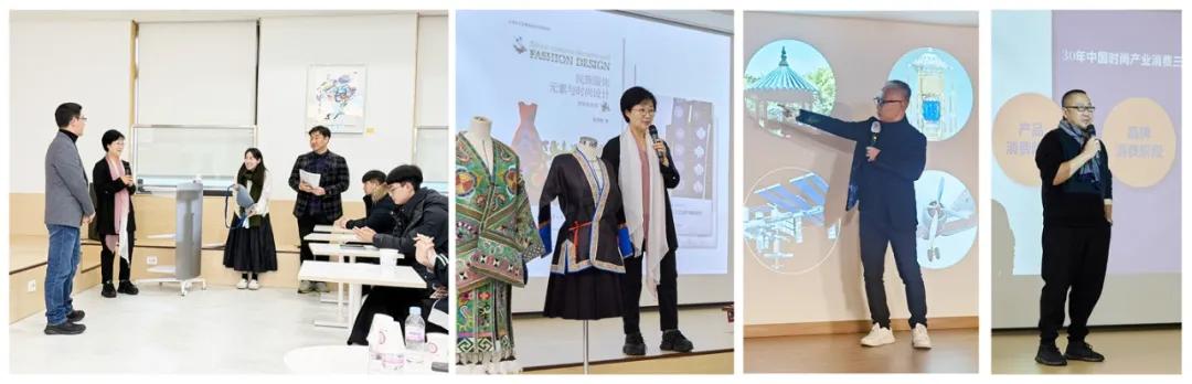 当天,司机社 四位教师在建国大学图书馆报告厅举办了系列专题讲座,深受现场师生欢迎。产品设计系主任余继宏以《在地性—中国地域文化创新设计方法与实践》为主题,从文化振兴与非遗传承的必要性、地域文化创新设计的迫切性、多利益相关者支持的重要性,提出了以地域文化为中心的协作共创设计实践模型。非遗教研中心主任张顺爱以《中国传统刺绣在现代设计中的应用》为题,讲述了传统刺绣的保护和继承的意义、具体刺绣技法以及不同民族及地域的特色。服装艺术设计系副主任罗竞杰的演讲题目是《基于中国产业价值链转型的新型时尚教育模式》,针对未来的产业转型模式需求,探讨了新模式下创新培养人才的思路与策略。视觉传达系副主任吴亮以《时尚秀演视觉设计中的传统文化传承与创新》为题,以跨文化视角剖析传统与时尚的结合,引发了双方教师和博士生们对文化互鉴和人工智能应用等的探讨。