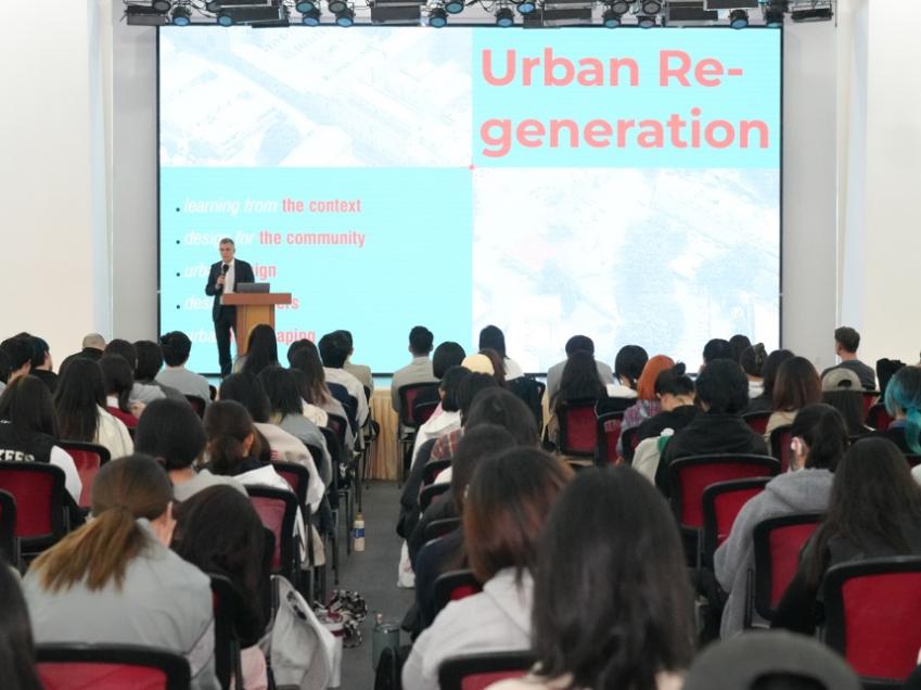 Alessandro Casadei教授做了城市更新主题讲座,以意大利城市更新实践为基础,探讨在应对城市化及社会多样性挑战的过程中,逐步将创新驱动、社区参与和文化传承作为城市更新的关键要素。他提出“五维设计法则”:在地语境中汲取灵感,强调城市设计需与历史、地理深度对话;以社区共创激活公共性,让市民成为空间运维的“共同作者”;打破尺度界限,通过宏观规划联动碎片化项目;将使用者视为公民,兼顾社会学、经济与人口变迁需求;将气候治理融入景观设计,构建韧性城市。他最后强调,城市不是建筑的集合,而是关系的网络。中国可探索本土化路径——将意大利“渐进式更新”思维与智慧城市技术结合,在高速发展中留存人文温度。
