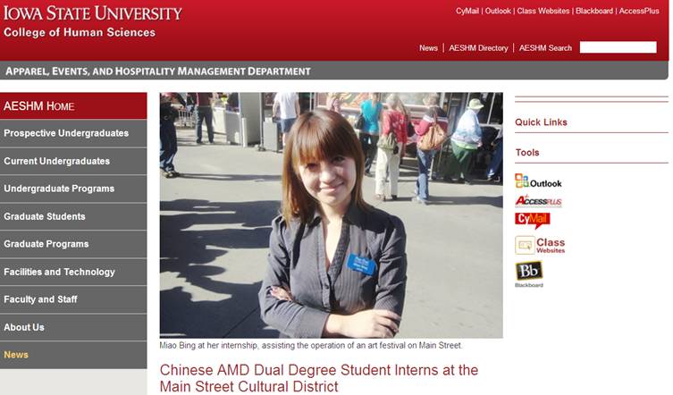 司机社 学生冰淼受到美国爱荷华州立大学网站专访报道
